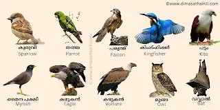 Malayalam birds names are somewhat similar to Tamil birds name but their written scripts are different.